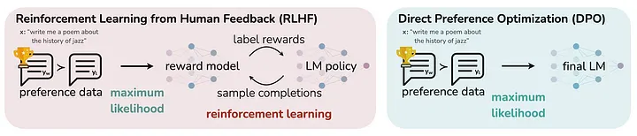 Direct Preference Optimization (DPO) is an equivalent of RLHF and has been gaining significant traction these days. DPO offers a straightforward method for fine-tuning large language models based on human preferences. It eliminates the need for a complex reward model and directly incorporates user feedback into the optimization process. In DPO, users simply compare two model-generated outputs and express their preferences, allowing the LLM to adjust its behavior accordingly. This user-friendly approach comes with several advantages, including ease of implementation, computational efficiency, and greater control over the LLM's behavior.